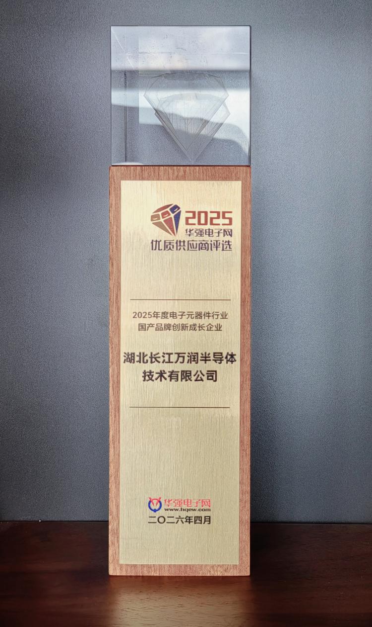 近日,由华强电子网主办的“2026半导体产业发展趋势大会暨2025年度华强电子网优质供应商&电子元器件行业优秀国产品牌颁奖盛典”在深圳举行。万润科技旗下长江万润半导体凭借在半导体存储领域的技术创新、市场竞争力与品牌影响力,荣获2025年度电子元器件行业“国产品牌创新成长企业”奖。