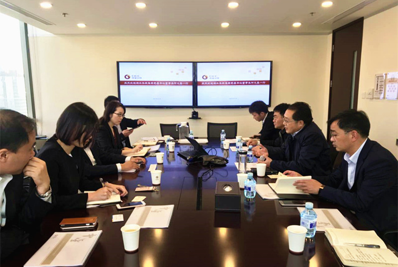 (长投网消息 通讯员唐阳)2017年11月1日下午,集团党委书记、董事长何大春一行五人前往北京中国国际金融有限公司(以下简称“中金公司”)总部会见了中金资本(中金公司直属企业)总经理丁玮,双方就长江经济带生态保护和绿色发展基金的合作方案、绿色生态环保产业的战略合作、绿色债券、境外债券融资等事宜进行了深入交流。