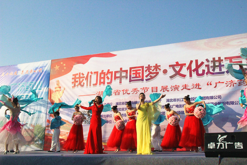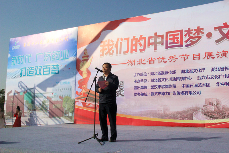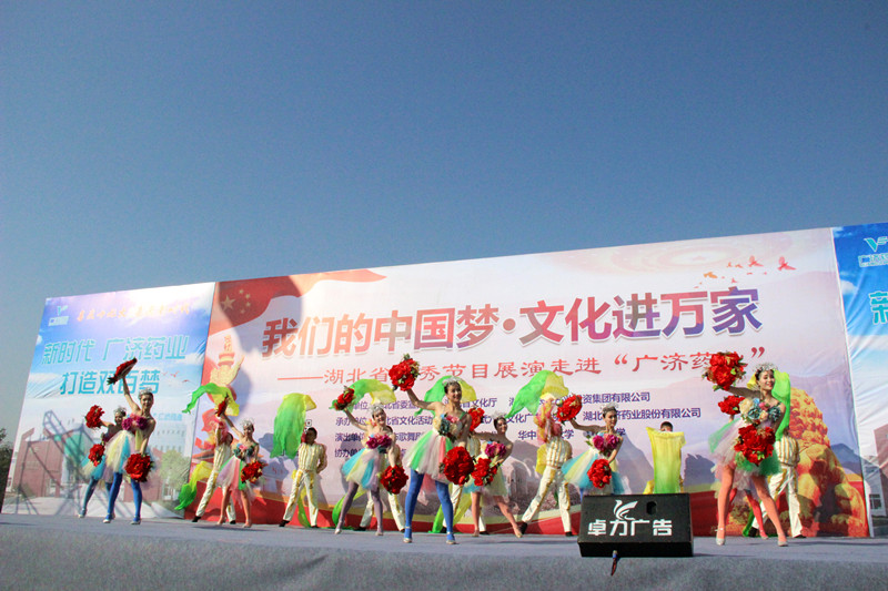 (长投网消息 通讯员王勇)11月2日,秋高气爽、硕果累累,“我们的中国梦·文化进万家——湖北省优秀节目展演”走进省长投集团广济药业活动隆重举行。省长投集团党委副书记张艳同志、武穴市委副书记、市长李新桥同志先后致辞。1000多名职工、群众欢聚在湖北广济药业股份有限公司大金生物产业园宽阔的广场,欣赏来自武汉市歌舞团、中国石油艺术团等专业表演团队为广大一线职工带来的一场加油鼓劲的歌舞盛宴。《美丽中国》《古琴台》《草原天堂》等一批具有地方、民族特色的歌舞相继登台亮相,一大批来自全省优秀的艺术家及文艺工作者亲临现场登台献艺。节目好戏连台、精彩纷呈,让观众掌声不断、好评如潮。