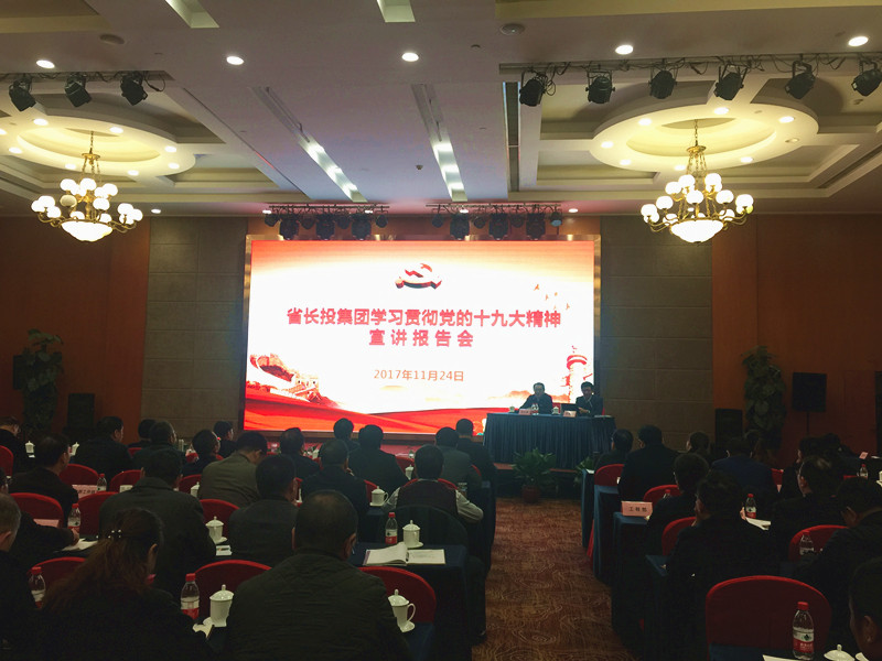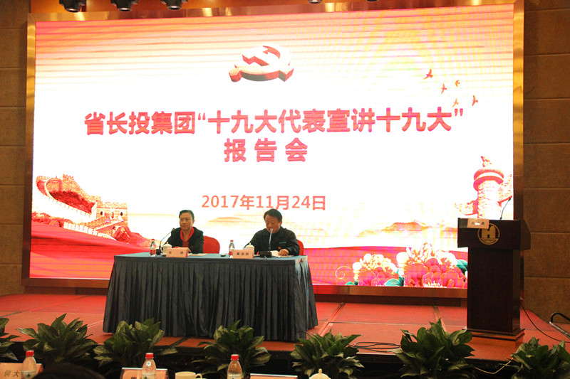 (长投网消息通讯员王勇)为深入学习宣传贯彻党的十九大精神,11月24日上午,省长投集团党委书记、董事长何大春主持召开学习贯彻党的十九大精神省委宣讲团报告会暨“十九大代表宣讲十九大”报告会,省委宣讲团成员、省委原副秘书长、省委政研室原主任吕东升作深入学习贯彻党的十九大精神专题辅导报告;集团所属广济药业电焊工、党的十九大代表戴益朋宣讲了十九大精神,集团党员、职工代表结合“学习十九大、对标戴益朋”畅谈了学习体会。集团领导张艳、熊新文、宿晓华、董志发等出席会议。