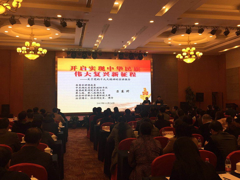 会上,吕东升以《开启实现中华民族伟大复兴新征程》为题,紧紧围绕党的十九大主题主线,从十九大盛况与总体把握,主要精神和重大贡献,大会的历史地位和重大意义等三个方面,全面深刻阐述了党的十九大精神,并运用翔实的数据和丰富的事例,深入解读了十九大报告核心要义。