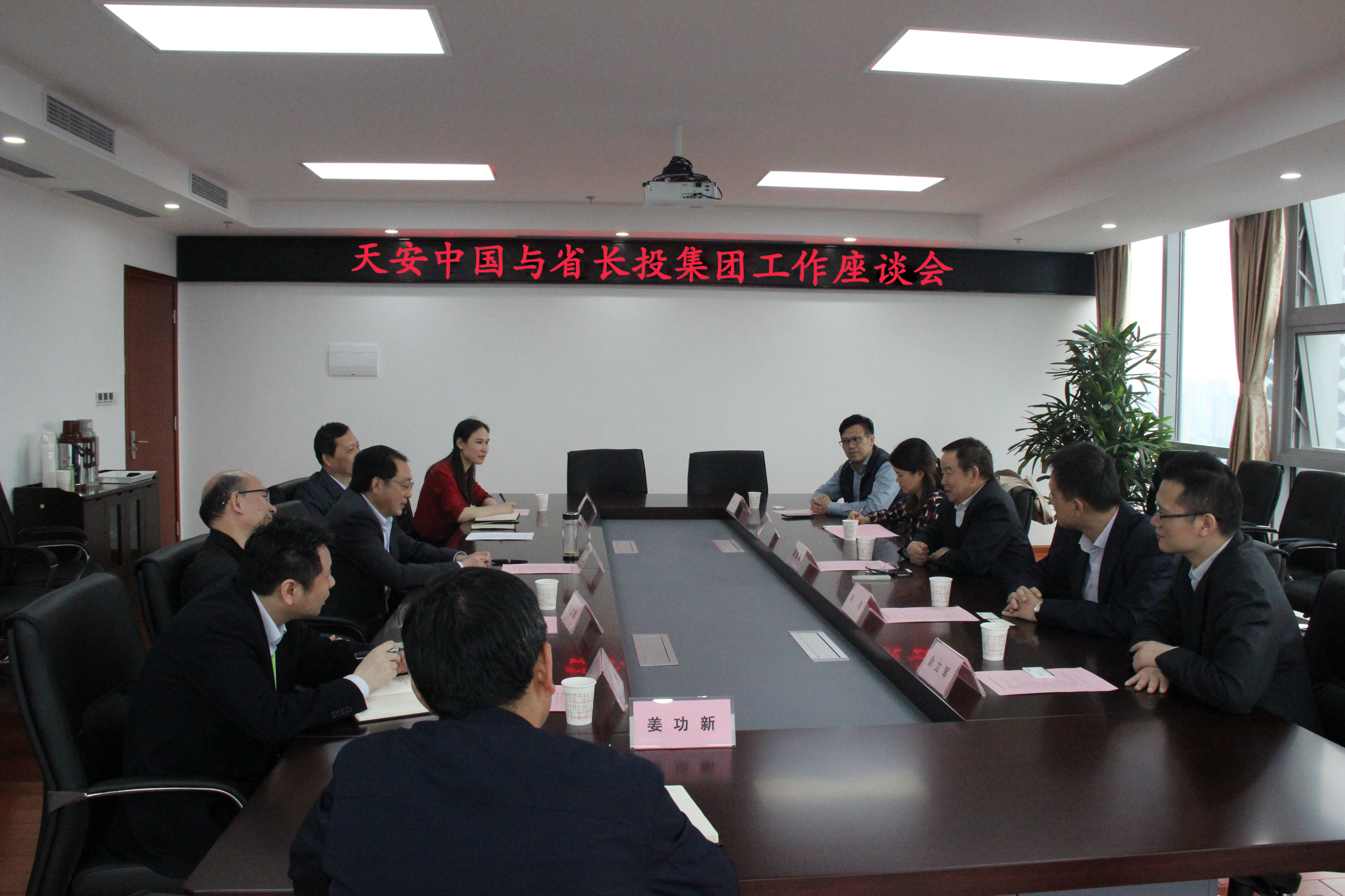 何大春董事长对胡爱民董事长一行表示欢迎,详细介绍了省长投集团的基本情况、主业发展规划和长投高科引进战投的基本思路。他表示,天安云谷作为天安中国的一张名片,开发运营模式值得借鉴。省长投集团一直秉承“学先进、傍龙头、走正道”的理念,按照“有实力、有底蕴、有品牌、有情怀”的标准选择合作伙伴,与天安中国开展深度合作,有利于形成优势互补,也符合长投高科的未来发展方向,希望双方以参与长投高科战略合作为起点,用先进的理念取长补短,开展多领域合作交流,促进省长投集团业务的提档升级和国有资产的保值增值。