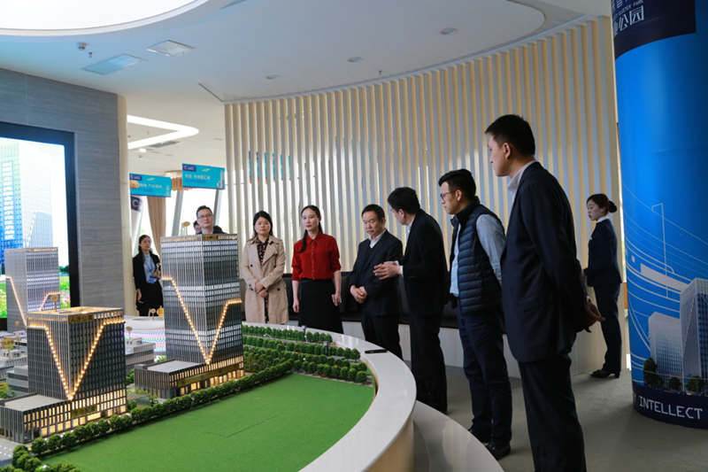 胡爱民董事长一行还到长投高科地信产业园、光谷基金港两个项目现场,对园区建设和配套服务等进行了调研,实地考察了研发楼、人才公寓、地下停车场等配套建设情况,并就园区定位招商、运营规划与长投高科总经理易琳进行了交流。
