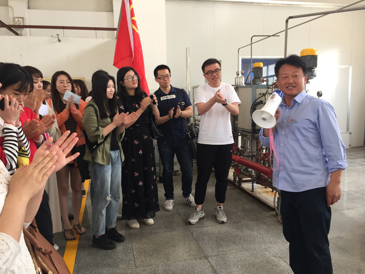 集团团员青年一行当天抵达广济药业大金产业园,在十九大党代表戴益朋同志的引领下参观了企业生产车间、发酵车间,劳模创新工作室等工作场所。通过此次深入基层学习,广大团员青年纷纷对戴益鹏同志数十年如一日的扎根一线、精益求精磨练技术的精神所折服,为长投集团涌现了这样一位党代表、全国技能大师而感到自豪。