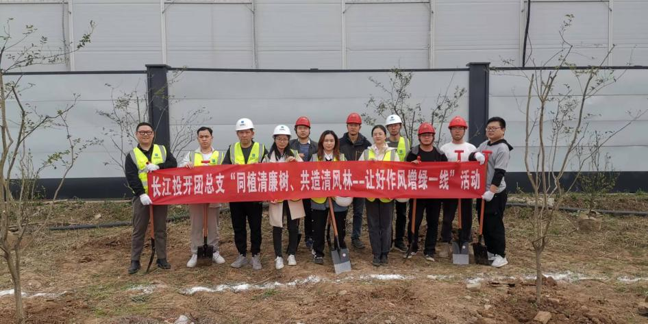 3月8日,长江投开团总支组织全体团员到阳逻长河九里项目工地,开展以“同植清廉树 共造清风林——让好作风‘增绿’一线”为主题的义务植树活动。
