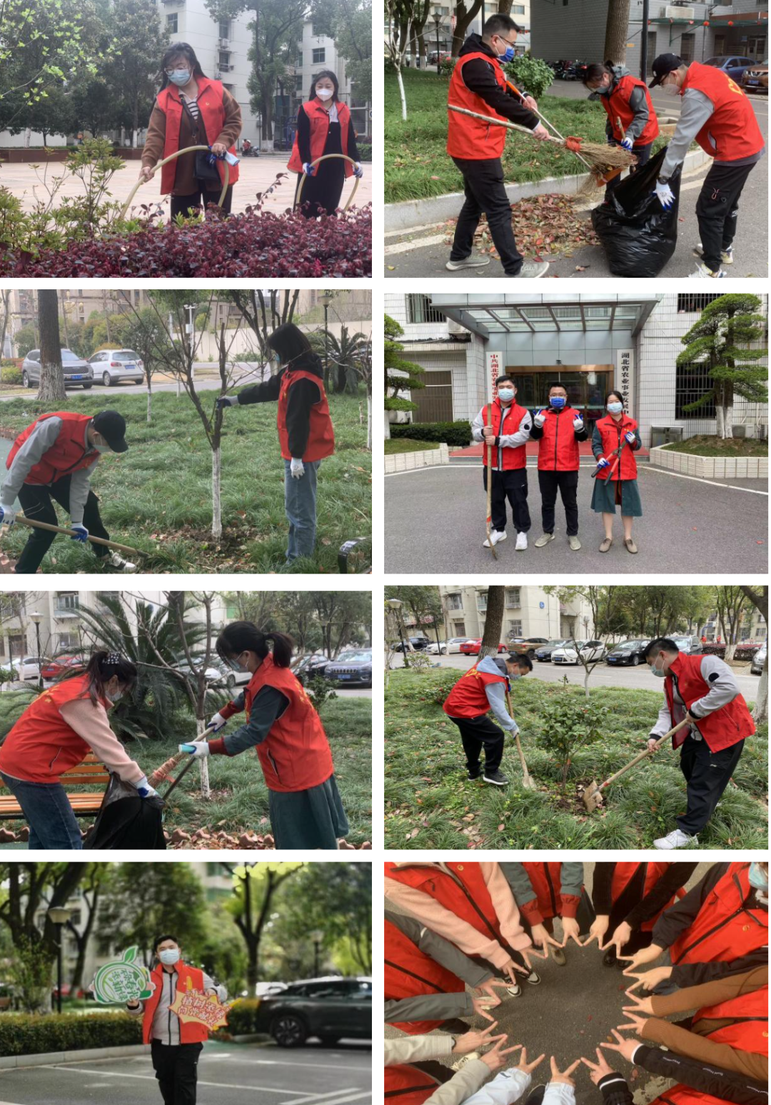 植树活动现场,由湖北典策团支部青年员工、典策物业员工代表组成的植树小队精神饱满、热情高涨,大家撸起袖子加油干,手握铁锹分工合作,定点挖坑、扶苗填坑,合力栽下一株株树苗。挥锄添新绿,满园皆是春,一道道“红马甲”忙碌在农业事业发展中心大院内,一棵棵树苗迎风矗立,交织成春日里一抹生机盎然的靓丽风景。