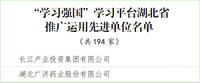 3月22日,“学习强国”湖北学习平台对2022年度“推广使用先进单位”和“学习达人”进行现场表彰,长江产业集团、广济药业荣获“学习强国”湖北学习平台“推广使用先进单位”,集团旗下广济药业熊信勇、高峰,长江投开林晗3名同志荣获“学习达人”称号。