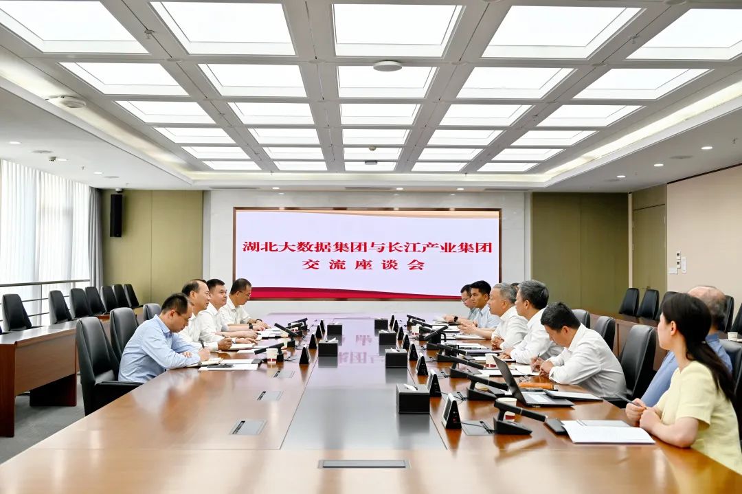 6月5日,湖北大数据集团党委书记、董事长汪小波,党委副书记、总经理董志发率队到访长江产业集团,与集团党委书记、董事长黎苑楚,党委副书记、总经理周勇士,围绕深化“数字+资本”双轮驱动合作进行座谈交流。湖北大数据集团党委委员、副总经理郑寒磊,集团领导李纪平、金颂参加座谈。