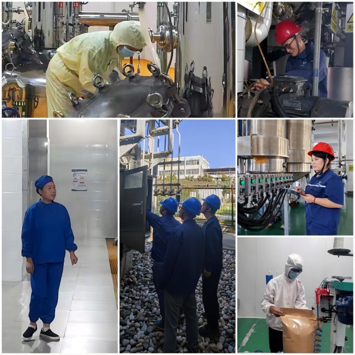 在生产一线,电仪员工正细致巡护高低压及变配电设备,以严谨的检查构筑起坚实的安全屏障。显微镜前,菌种班组严格调试温湿度与营养环境,守护着微生物的“生命摇篮”,培育蕴含无限潜能的优质菌种。在水处理区域,技术人员沉稳检视多介质过滤、活性炭吸附、精细过滤及反渗透等核心环节,确保每一道流程精准可靠。在结晶岗位旁,结晶工专注凝视物料的颜色与溶解状态,不放过结晶过程中的任何细微变化。在包装区内,技术人员将“质量第一”铭记于心,在加快进度的同时,细心核对标签粘贴与产品数量,确保每一箱成品都符合标准。