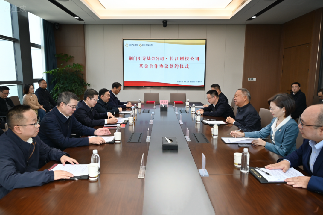 荆门市投资引导基金有限公司董事长、总经理李国强与长江创业投资基金管理有限公司副总经理李鄂代表双方签署基金合作协议。