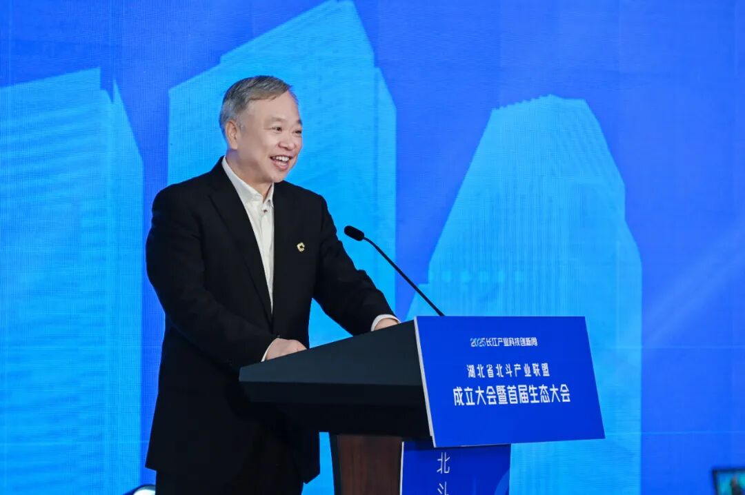 黎苑楚代表联盟理事长单位致辞。他表示,北斗产业关乎“国之大者”,是科技自立自强的重要支撑,也是塑造未来竞争新优势的战略基石。省委、省政府高度重视北斗产业发展,将其列为湖北突破性发展的优势产业,经过多年发展,湖北北斗产业区域发展指数稳居中部第一。作为省级以发展产业为使命的国有企业,长江产业集团始终将发展北斗产业作为落实国家战略、服务湖北支点建设的重要抓手,通过培育实体企业矩阵、设立超百亿元北斗产业基金群、攻克核心技术难关、组建北斗供应链公司、搭建湖北CORS服务“一张网”平台、构建产业生态等一系列举措,为北斗产业发展奠定了坚实基础。作为湖北省北斗产业联盟发起单位和理事长单位,集团将坚决扛起“链主”担当,从构建协同机制促进生态融合、聚焦关键技术突破产业瓶颈、强化资本赋能助力产业提质升级、开放核心资源强化服务支撑、深化开放合作拓宽发展空间五个方面发力,与全体会员单位携手,共同打造具有全球竞争力的北斗产业集群。
