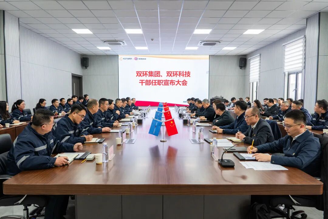 2月6日,长江产业集团党委书记、董事长黎苑楚,党委副书记、总经理吕晓华带队赴双环科技开展领导班子任职宣布、高质量发展调研座谈,见证双环科技纳电正材中试产品下线并进行节前安全生产检查。集团党委副书记李纪平主持会议。